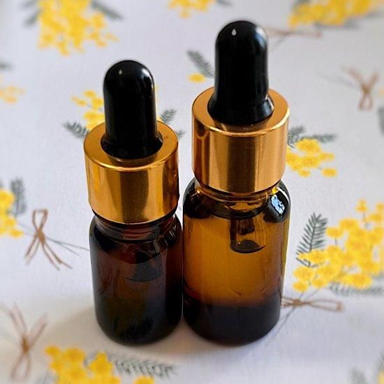 ※写真の左側が5ml、右側が10mlサイズ。どちらも手のひらにすっぽり収まるサイズです。